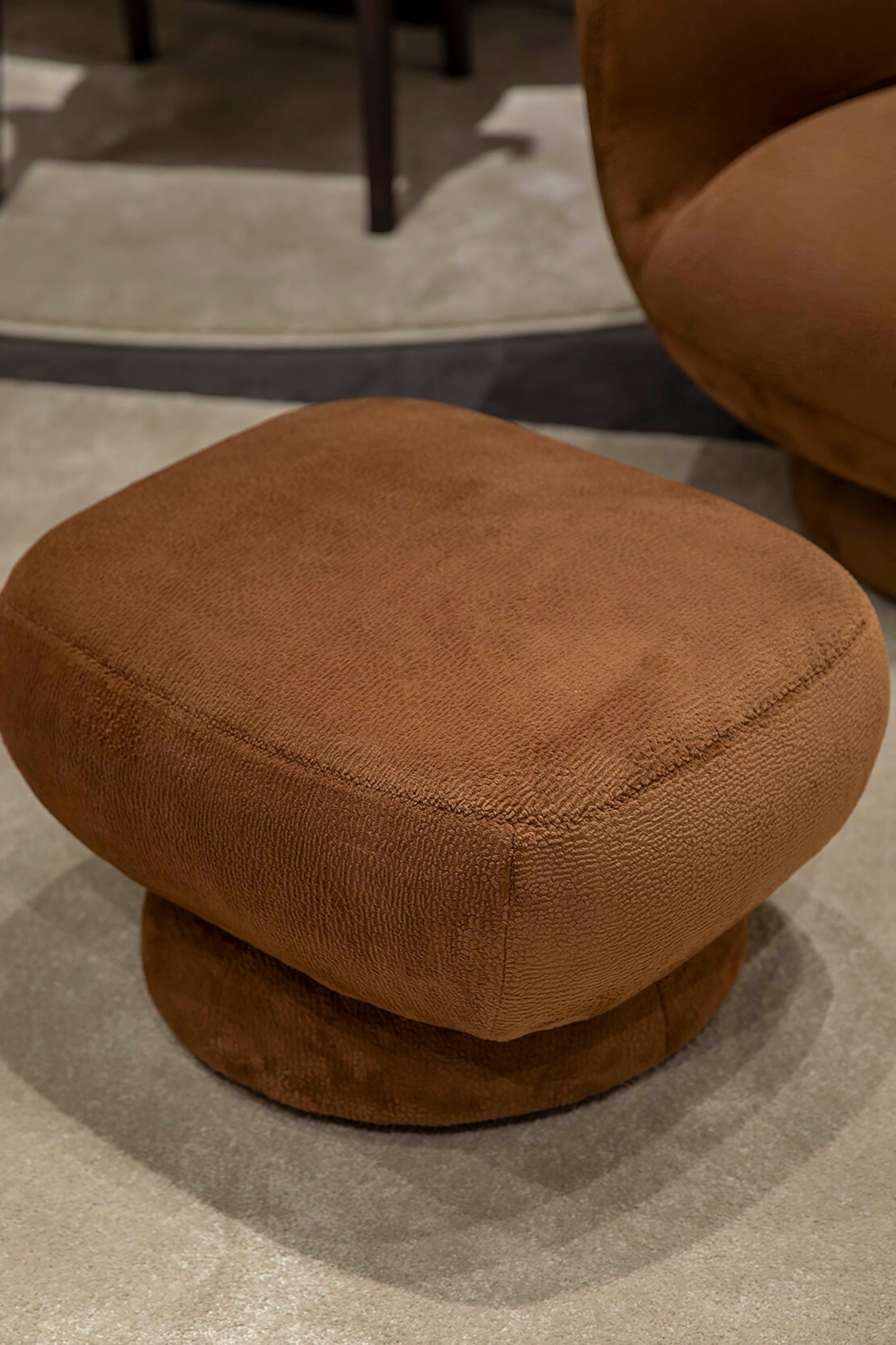 De Olaf Pouf combineert natuurlijke materialen met een zachte, moderne vormgeving. De comfortabele, afgeronde zitting rust op een massieve houten basis, wat zorgt voor een warme en verfijnde uitstraling.