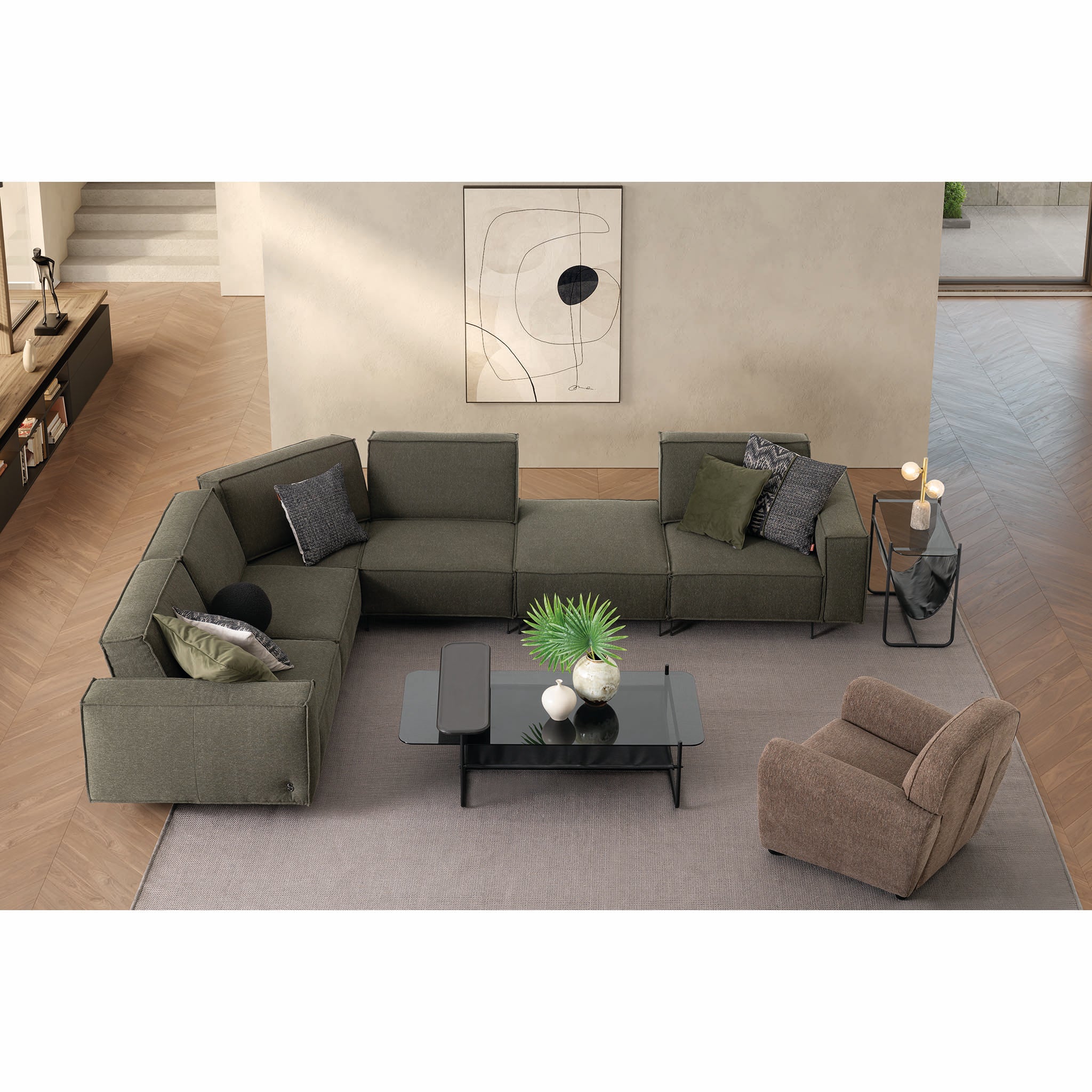A modular sofa that combines geometry and softness. With a solid wood frame, high-quality filling, and elegant lines—for those who want to combine form and comfort.