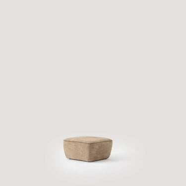 Compacte vierkante design pouf met zachte afgeronde hoeken en tijdloze uitstraling.