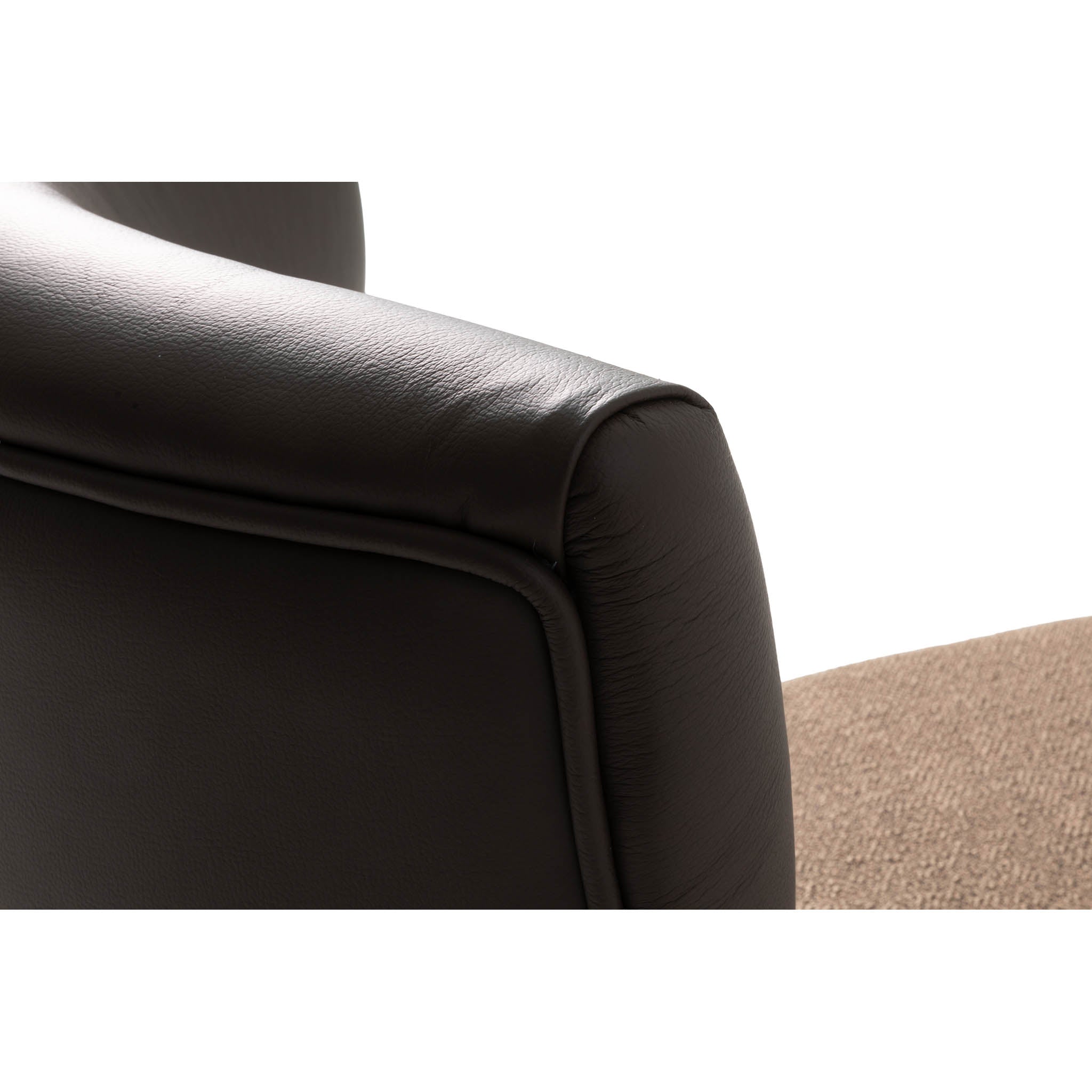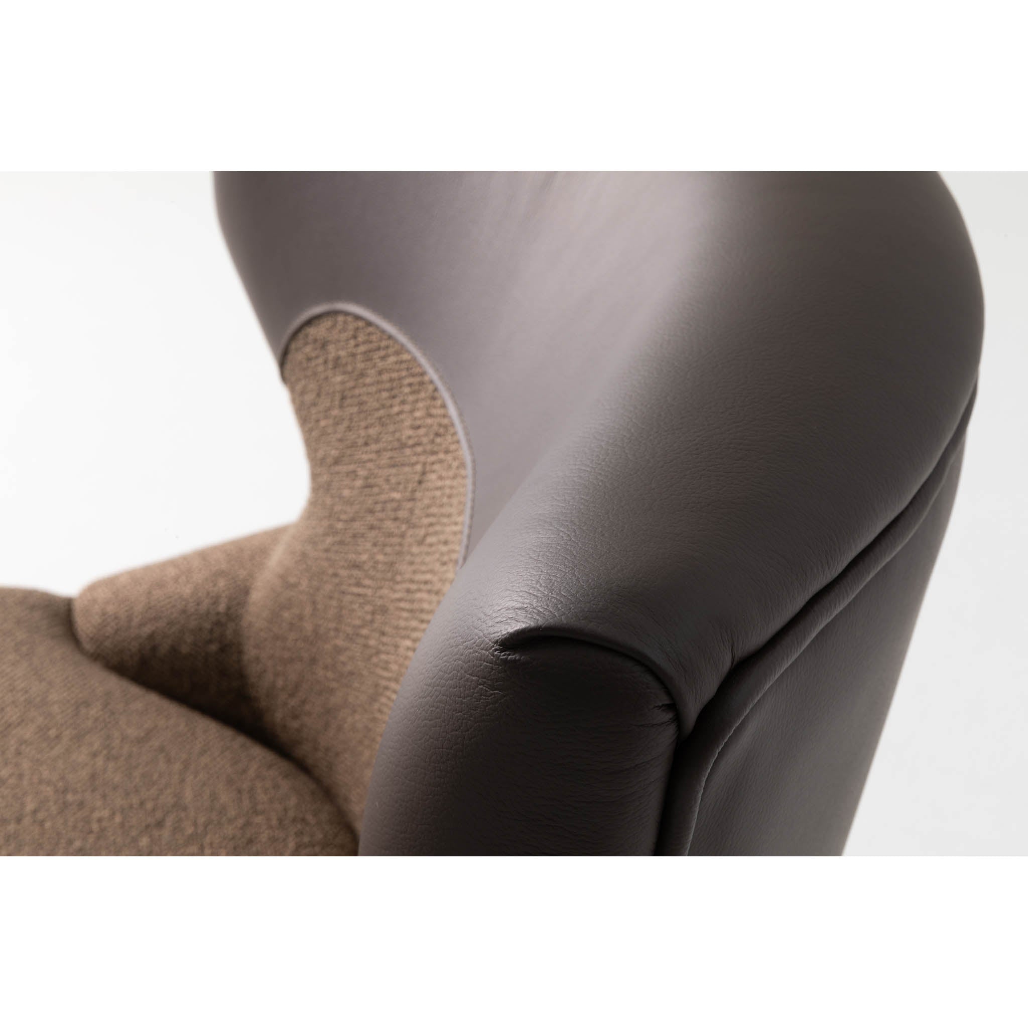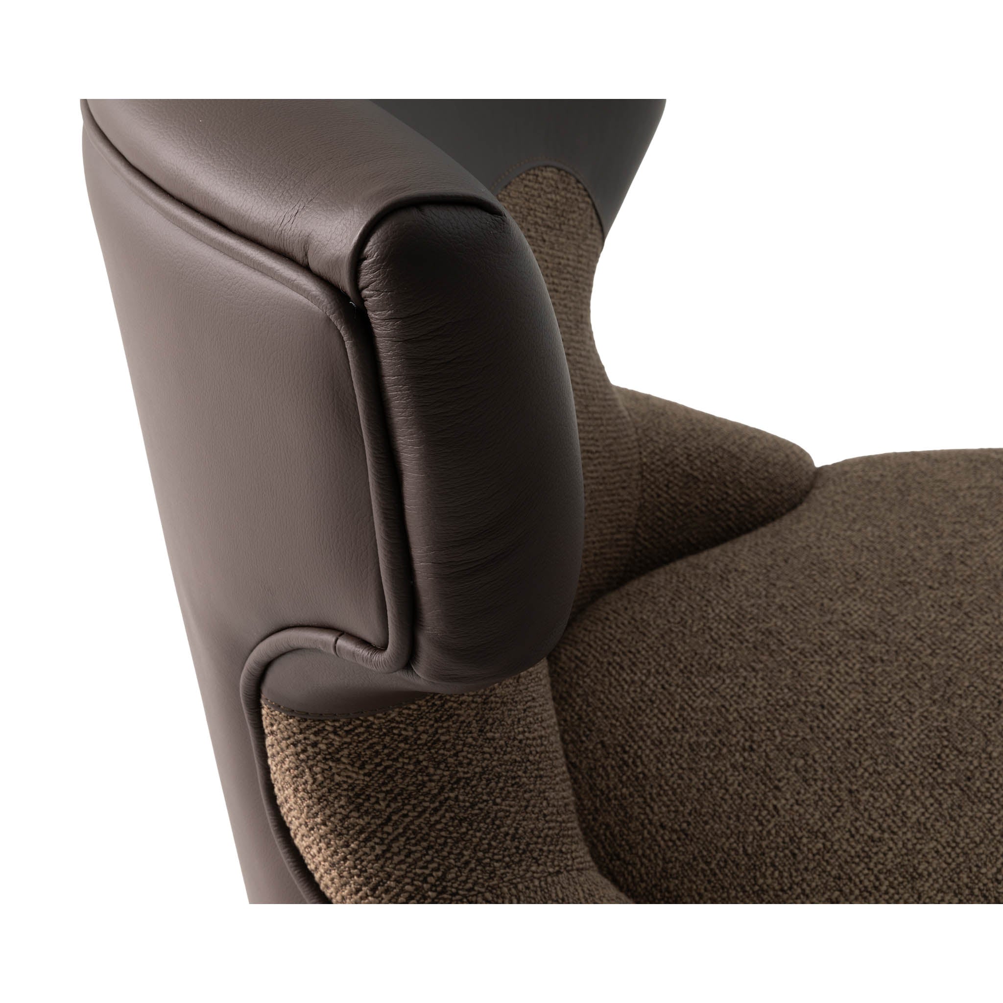 De Bristol Fauteuil is een sculpturaal statementstuk waarin verfijning en comfort samenkomen. De krachtige lijnen, zachte rondingen en het subtiele contrast tussen stof en leder creëren een luxueuze uitstraling met karakter.