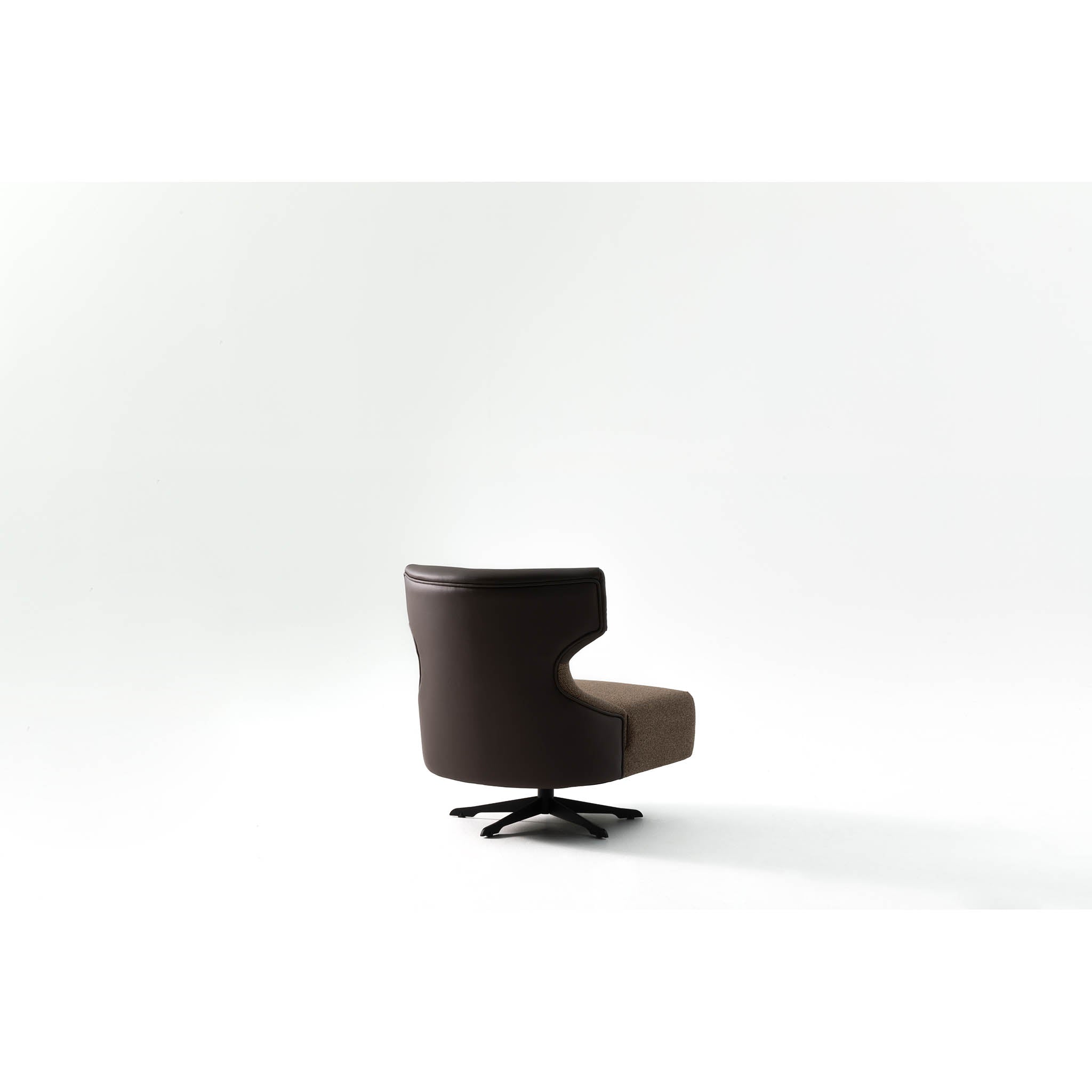 Dankzij de draaibare metalen voet biedt de Bristol niet alleen esthetiek, maar ook functionaliteit. Perfect als loungefauteuil in de woonkamer, als statement piece in een hotellobby of als stijlvolle leesstoel in een designinterieur.